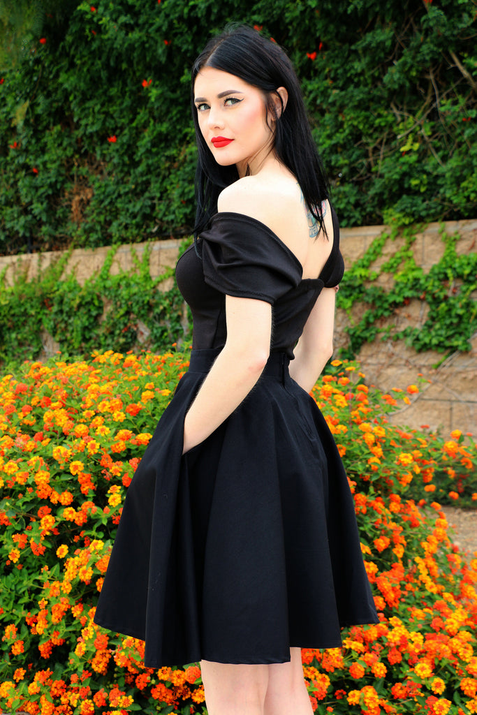 Retro and dainty, all in one! This adorable, comfy feel, super soft, ponte knit top has three darling features. It can be worn on or off the shoulders and you can scrunch up the sleeves. Paired with a classic circle skirt, this shirt says Wow! This limited time top comes in sizes XS-2XL and is available in other beautiful classic colors that any dame would die for!