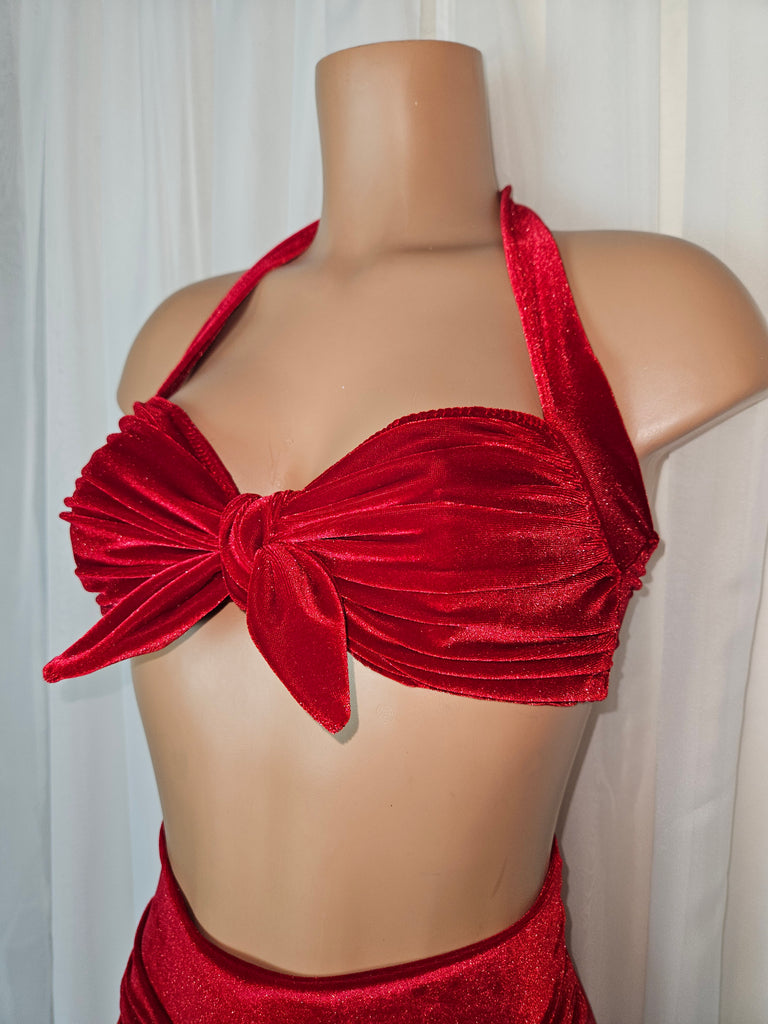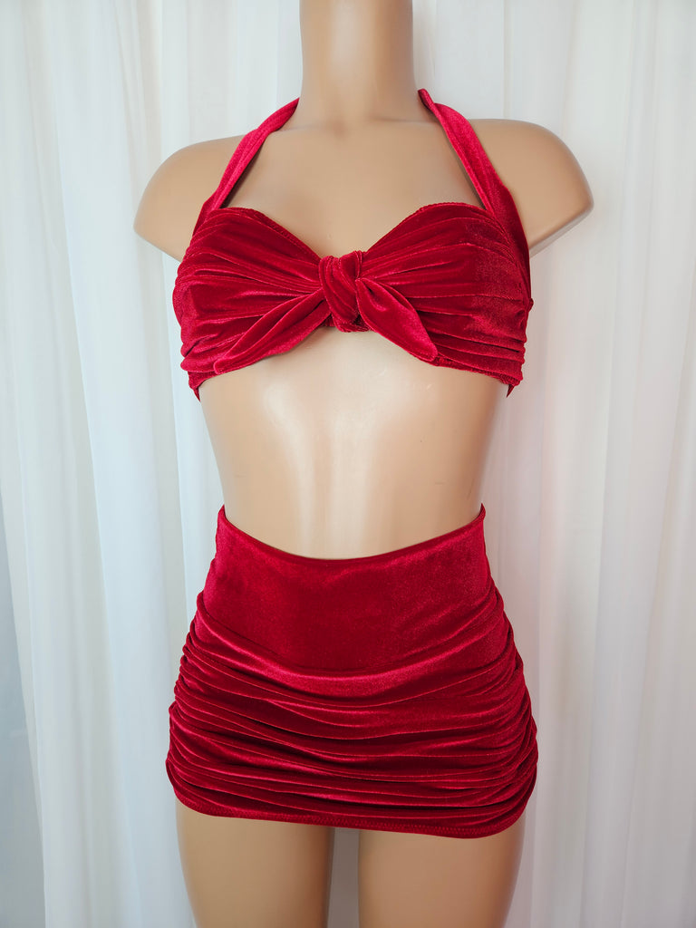 Exude old Hollywood glam with our handmade Starlet Ruched Top in Red Velvet. Its 1950s style and stretch velvet fabric allow for a flattering fit, while the ruched front detail adds a touch of elegance. Perfect for any pinup style outfit.