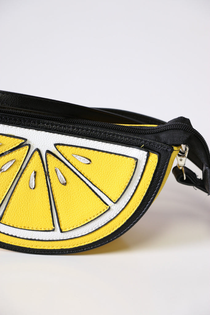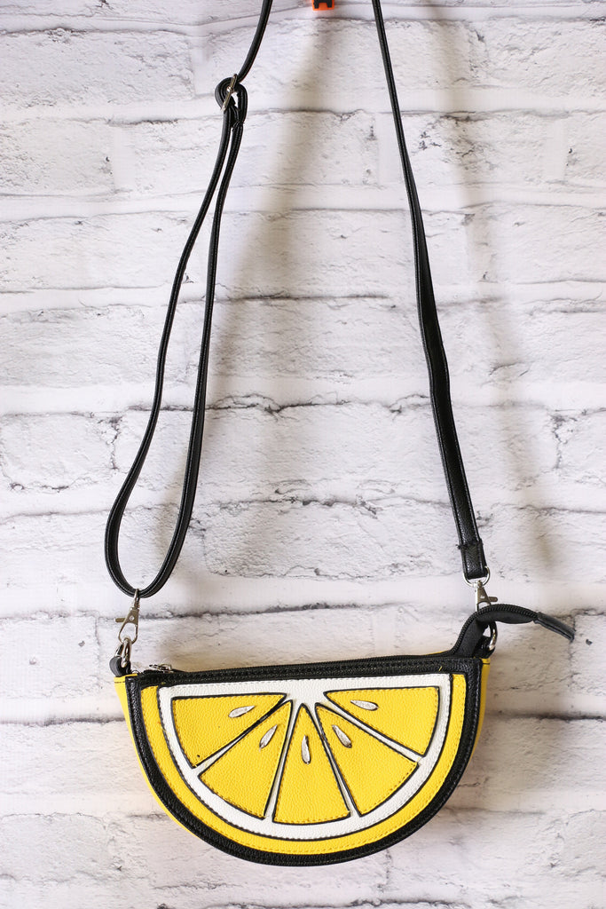 This cute lemon shoulder bag will certainly brighten your day! Made with a top zipper to secure your belongings, the front features yellow lemon slices and a black adjustable shoulder strap that will bring some flavor to your look!